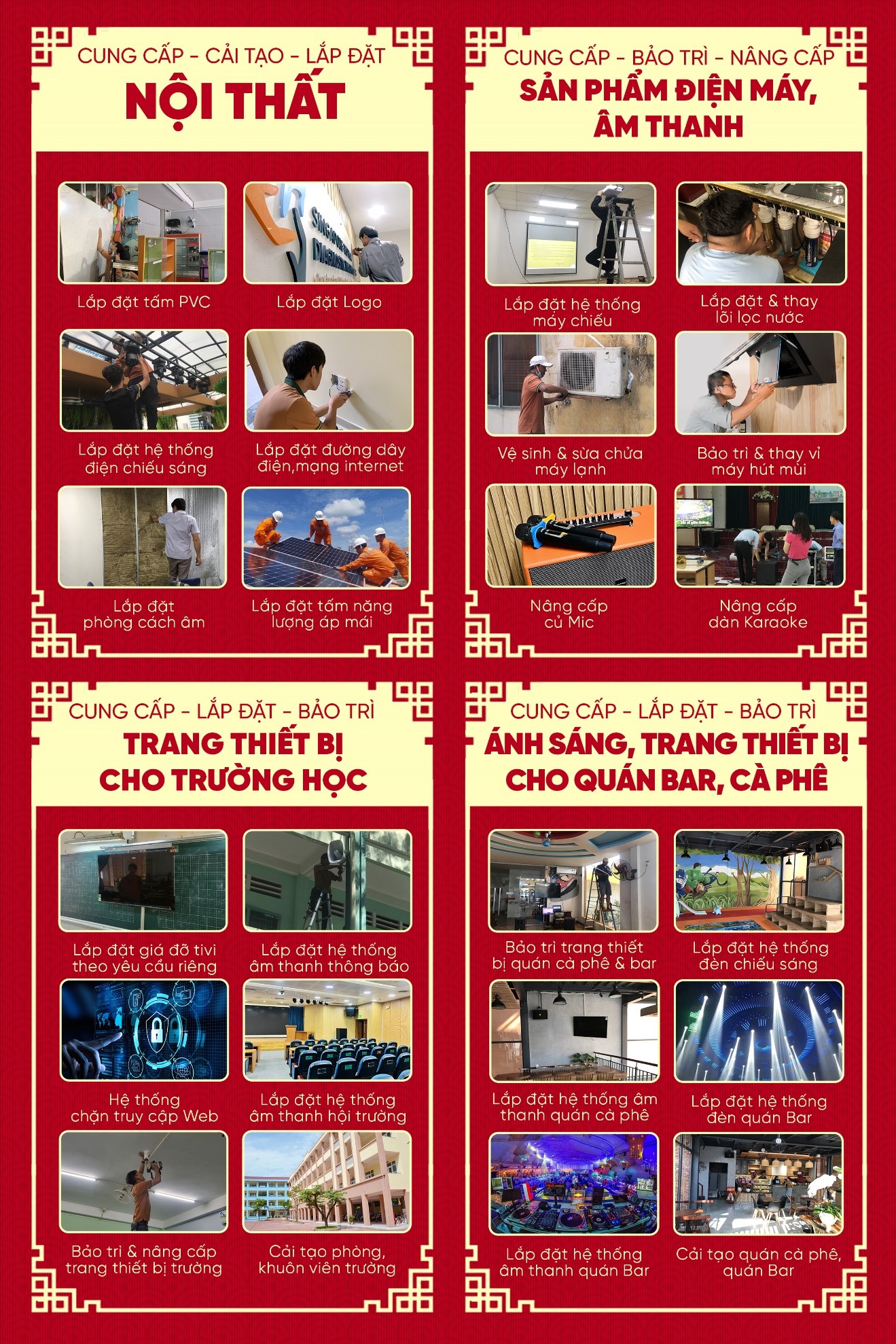 - Cung cấp, bảo trì, nâng cấp sản phẩm điện máy, âm thanh.