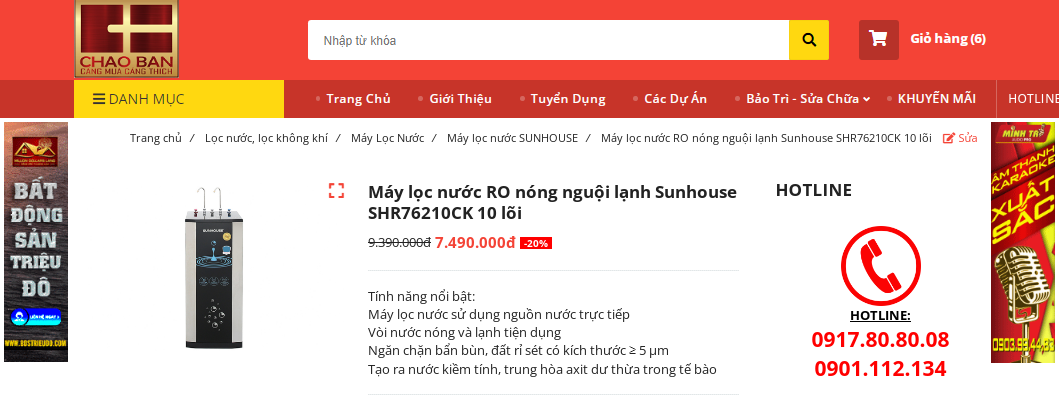 8) Máy lọc nước RO nóng nguội lạnh Sunhouse SHR76210CK 10 lõi