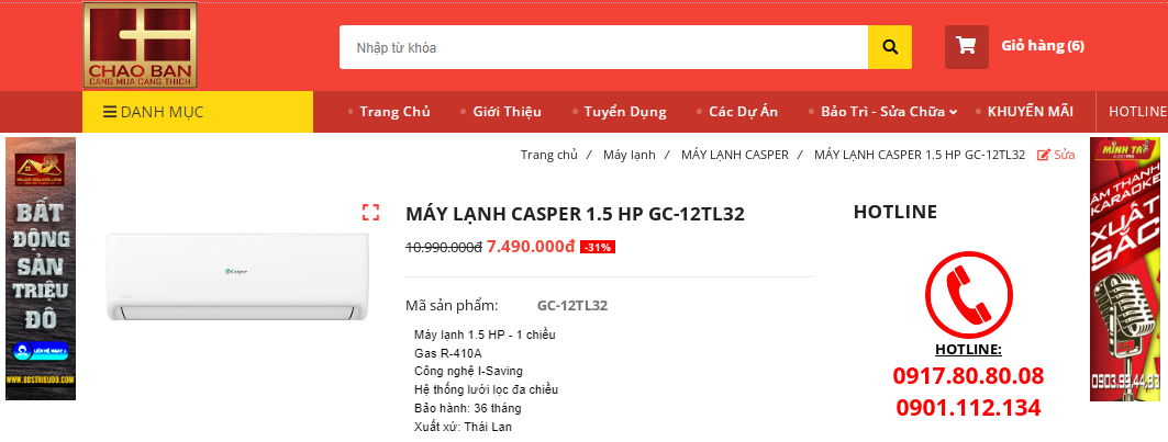 2) MÁY LẠNH CASPER 1.5 HP GC-12TL32