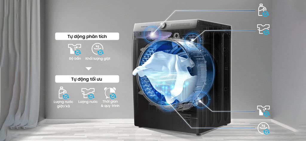 Một trong những tính năng quan trọng của máy giặt thông minh là cảm biến thông minh. Nhờ vào cảm biến này, máy giặt thông minh có thể phát hiện các loại vải khác nhau và điều chỉnh lượng nước và chế độ giặt phù hợp để đảm bảo quần áo được giặt sạch mà không bị hư hại. Điều này cũng giúp tiết kiệm nước và điện năng, giảm thiểu tác động đến môi trường.
