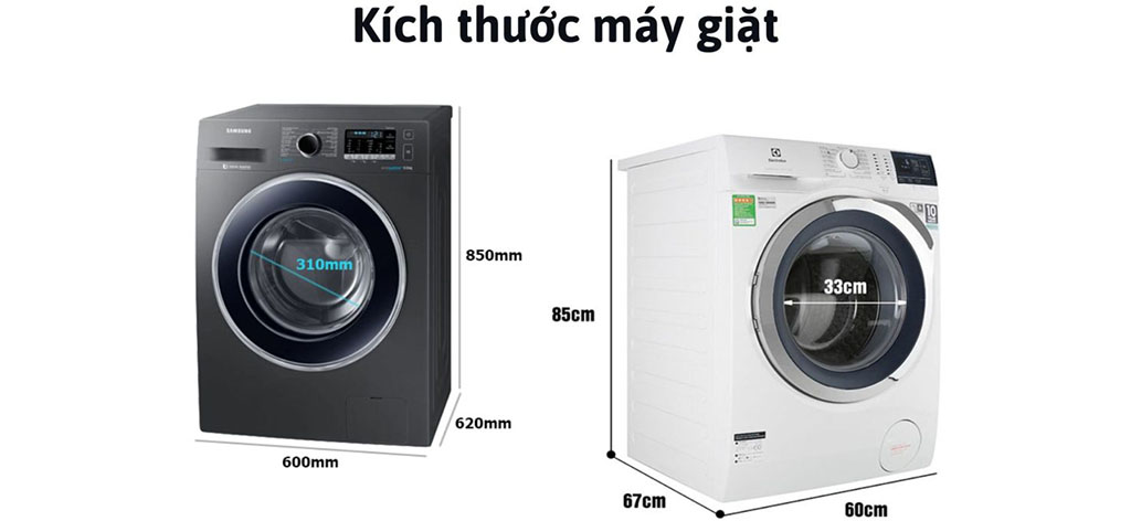 Khi lựa chọn mua máy giặt, bạn cần xem xét kích thước máy giặt phù hợp với không gian và nhu cầu sử dụng của gia đình. Có ba kích thước máy giặt phổ biến: kích thước nhỏ, kích thước vừa và kích thước lớn.