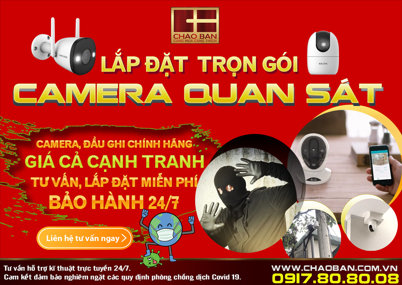 Với đội ngũ nhân viên chuyên nghiệp, tận tình sẽ tư vấn cho khách hàng những bộ camera quan sát phù hợp nhất tất cả nhu cầu của khách hàng. Khi có yêu cầu lắp đặt, trong vòng 24h Chào Bán sẽ nhanh chóng có nhân viên đến lắp đặt.