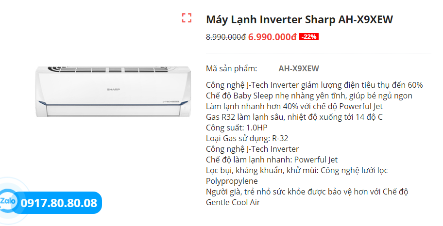 1. Máy Lạnh Inverter Sharp AH-X9XEW