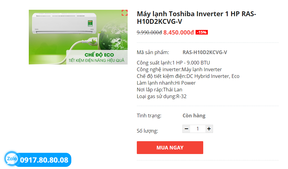 Công suất làm lạnh nhanh, tiết kiệm điện năng