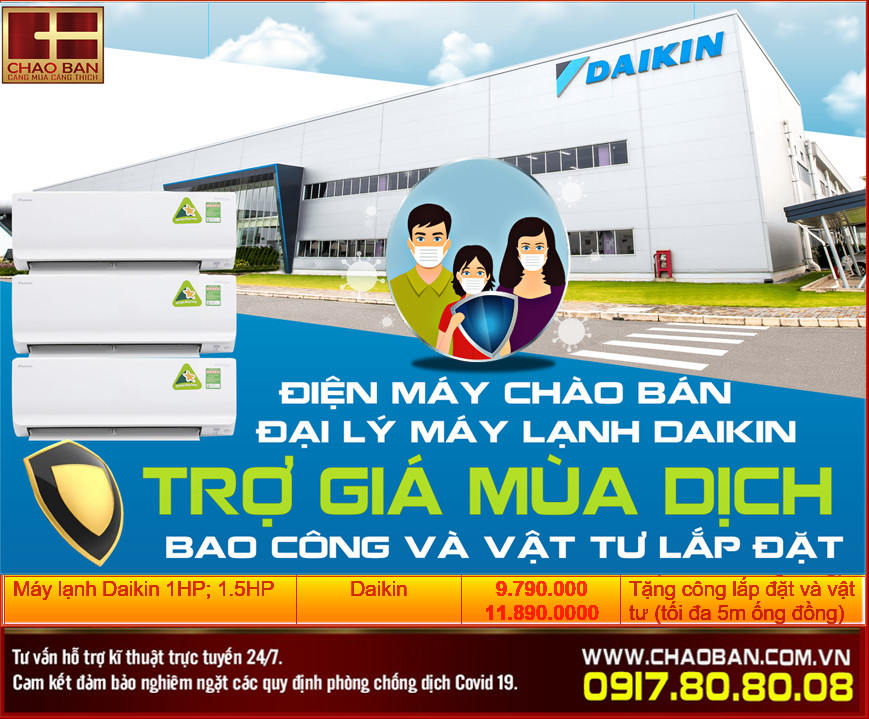 Chào Bán đang có chương trình " TRỢ GIÁ MÙA DỊCH" cho máy lạnh DAIKIN nhằm đồng hành cùng Quý khách hàng vượt qua mùa covid-19