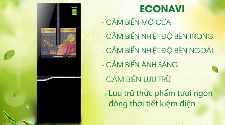 Cảm biến Econavi cho phép tủ lạnh phát hiện năng lượng tiêu thụ không hiệu quả qua 5 cảm biến tích hợp trên sản phẩm: Cảm biến cửa, cảm biến nhiệt độ bên trong, cảm biến nhiệt độ phòng, cảm biến ánh sáng và cảm biến lưu trữ. Thông qua kết quả phân tích từ cảm biến, máy nén Inverter sẽ tự điều chỉnh tốc độ quay của động cơ.