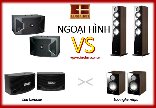 Loa hát karaoke thường được thiết kế kiểu nằm ngang, tối ưu cho việc treo tường. Còn loa nghe nhạc thường dáng dọc, để đặt trên kệ đứng sao cho củ loa ngang với độ cao người ngồi nghe. Mặt khác, loa karaoke được chế tạo thiên về công suất lớn, đáp ứng đột biến nhanh. Còn loa nghe nhạc thiên về sự tinh tế, trung thực.
