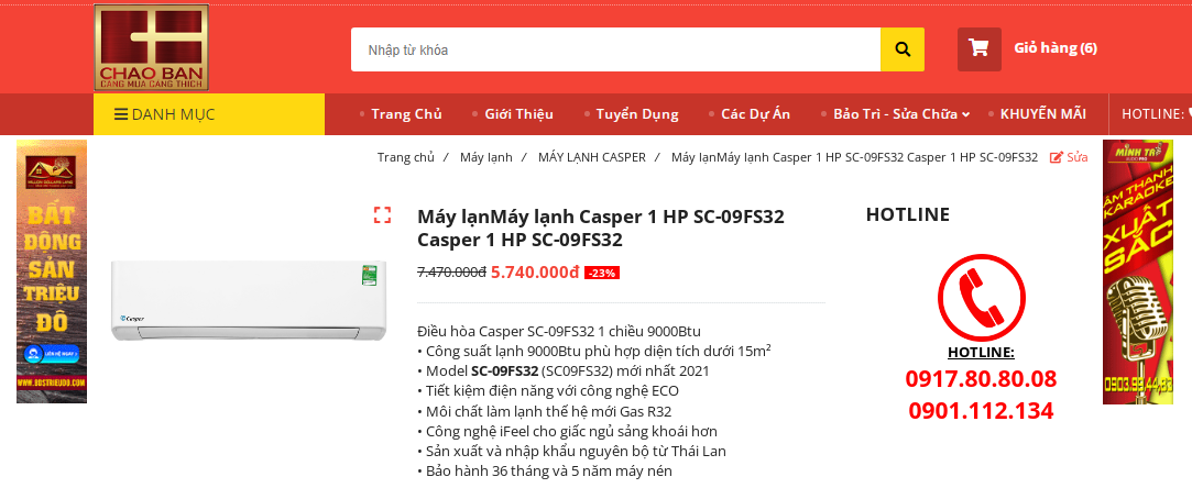 3) Máy lạnh Casper 1 HP SC-09FS32