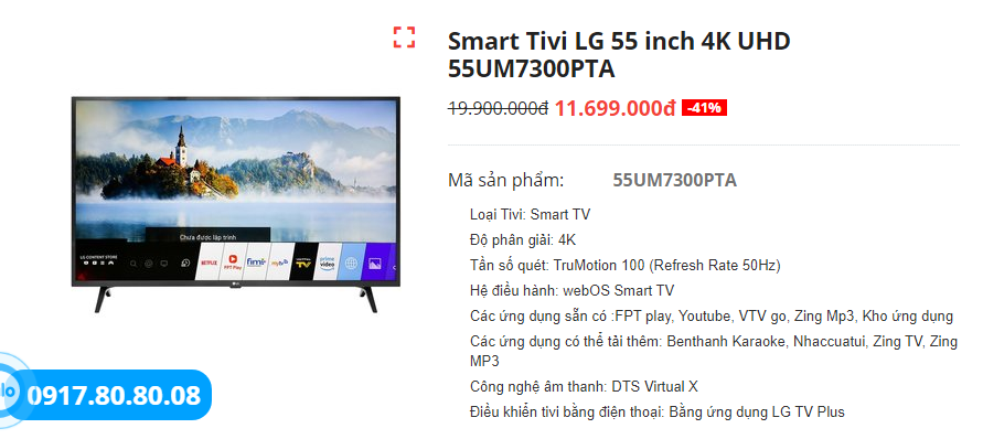 1. Smart Tivi LG 55 inch 4K UHD 55UM7300PTA