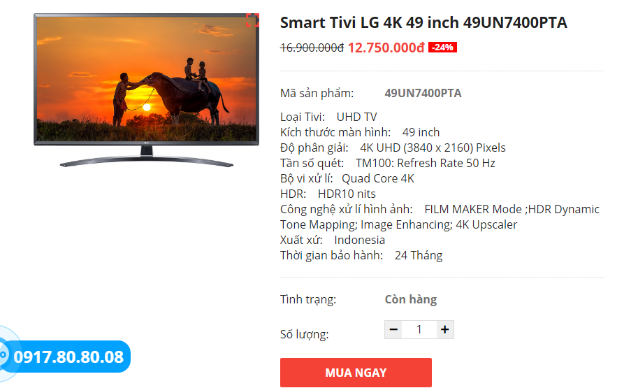 3. Smart Tivi LG 4K 49 inch 49UN7400PTA
