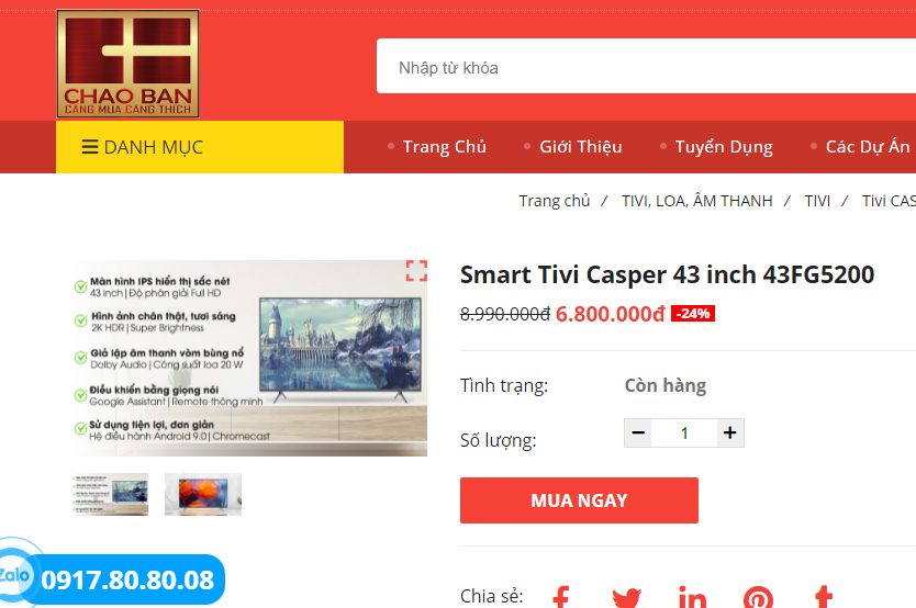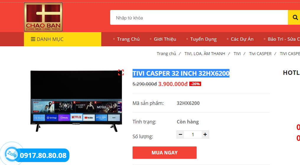 Đây là 6 model tivi Casper có giá tốt nhất tháng 5/2021 tại Chào Bán