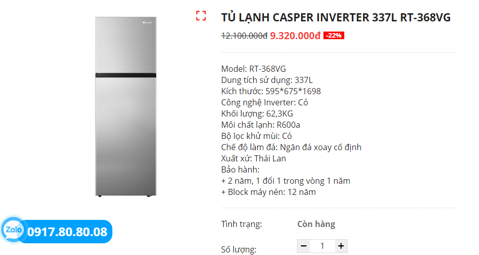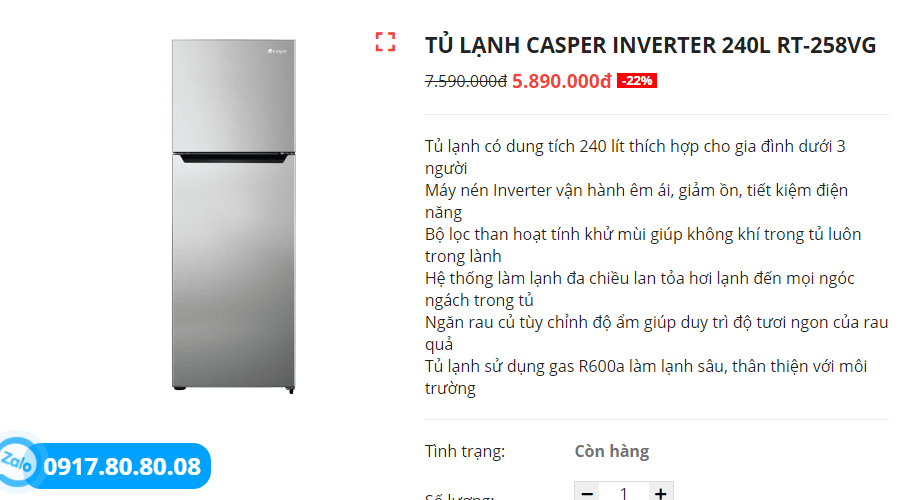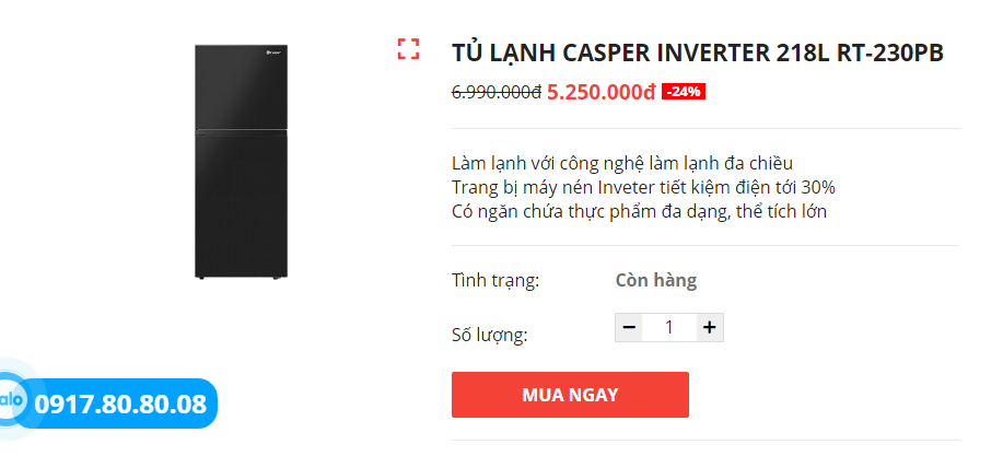 TOP 6 TỦ LẠNH CASPER GIẢM 20% - 40% CHỈ CÓ TẠI CHÀO BÁN
