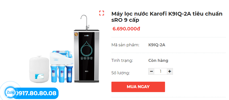 4) Máy lọc nước Karofi K9IQ-2A tiêu chuẩn sRO 9 cấp