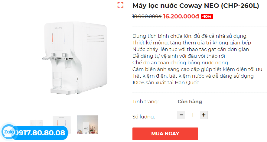 3) Máy lọc nước Coway NEO (CHP-260L)