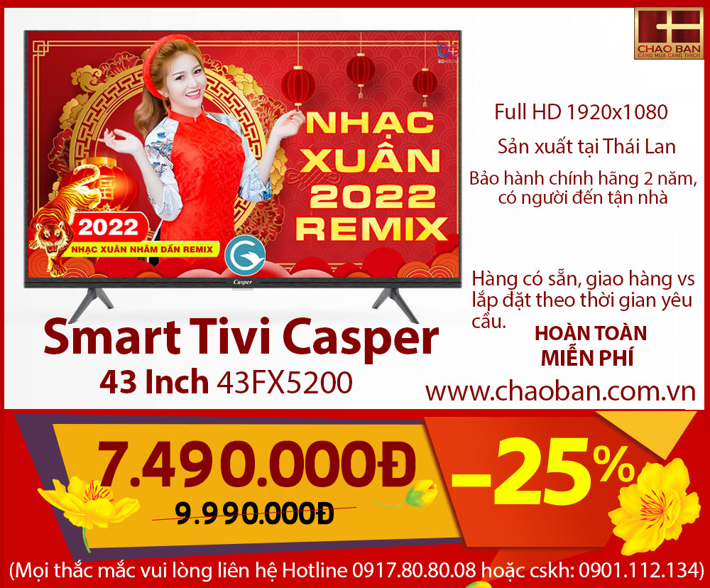 The two Smart TV Casper 43inch shown above are the most popular and chosen today. It is not only inexpensive, but it also has many modern technologies. Please call Chao Ban electronics as soon as possible to bring it home.