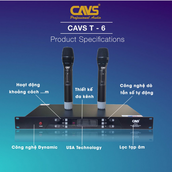 Micro không dây CAVS T6 là thế hệ micro không dây mới nhất ra đời hướng tới karaoke giải trí chuyên nghiệp. Thiết bị cung cấp âm thanh chất lượng, tròn tiếng, giọng ca trong sáng, dày và ấm. Khả năng lọc hú và chống nhiễu tối đa. sản phẩm phù hợp với dàn karaoke gia đình với những tính năng nổi bật về tần số, chất âm và giá cả