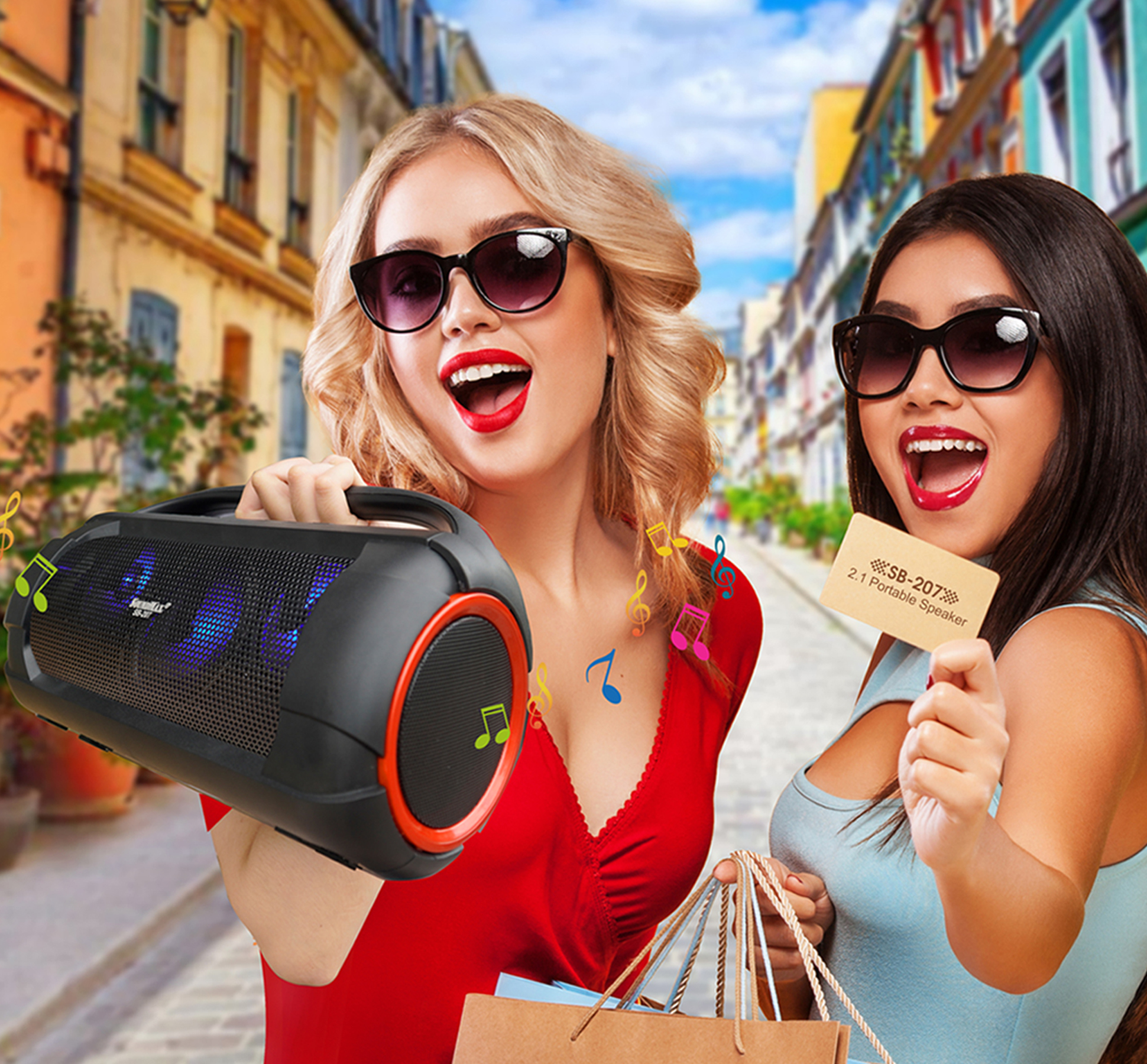 Loa Soundmax SB-207 được thiết kế theo phong cách năng động hiện đại. Dành cho các bạn trẻ yêu thích âm nhạc và thích được hòa mình vào đam mê. Với kích thước 337.3x191.1x135.9mm cực kỳ nhỏ gọn, được thiết kế thêm quai xách tiện lợi giúp bạn có thể móc dây đeo mang theo bên mình khi cần thiết. Khu vực cụm loa trung tâm được che chắn bởi một lớp lưới kim loại cứng cáp, cùng hệ thống đèn Led màu xanh dương tạo nên sức hút độc đáo từ chiếc loa di động.