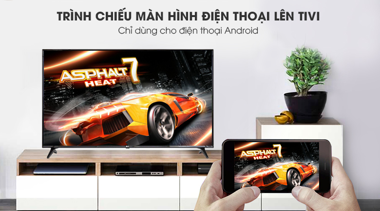 Tivi LG 4K này hỗ trợ chiếu màn hình điện thoại Android lên Smart tivi qua ứng dụng Screen Mirroring để chia sẻ nội dung từ màn hình điện thoại lên tivi LG 55 inch để chơi game, xem phim,