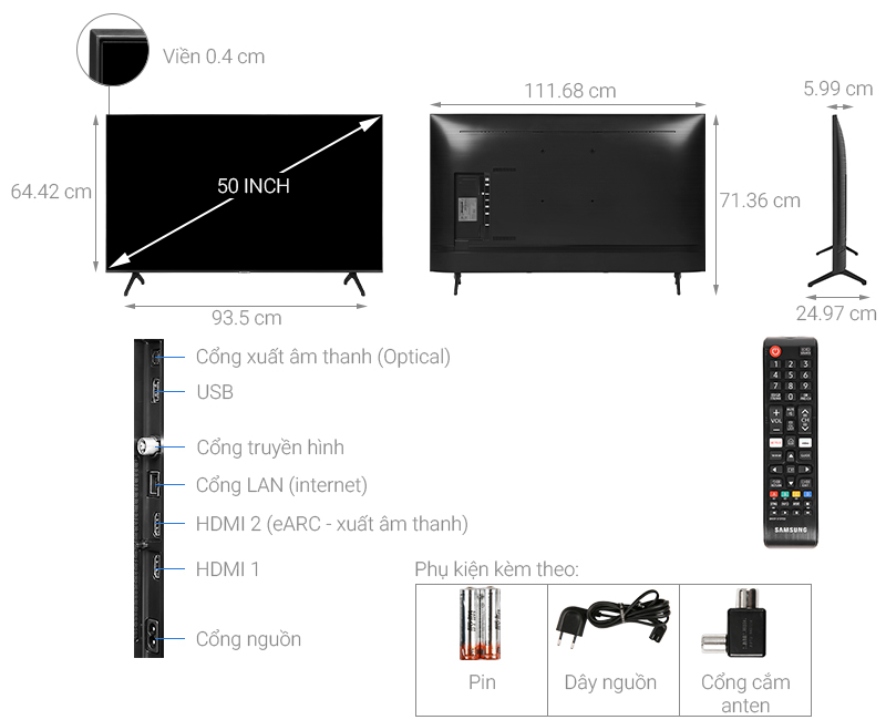 Smart Tivi Samsung 4K 50 inch UA50TU8100 sở hữu thiết kế không viền 3 cạnh mang đến cho bạn những trải nghiệm xem mỗi khung hình đều trọn vẹn, chân thực.