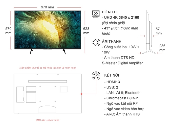 Kích thước màn hình tivi Sony 43 inch thích hợp để đặt ở các nơi như phòng ngủ, phòng họp,...