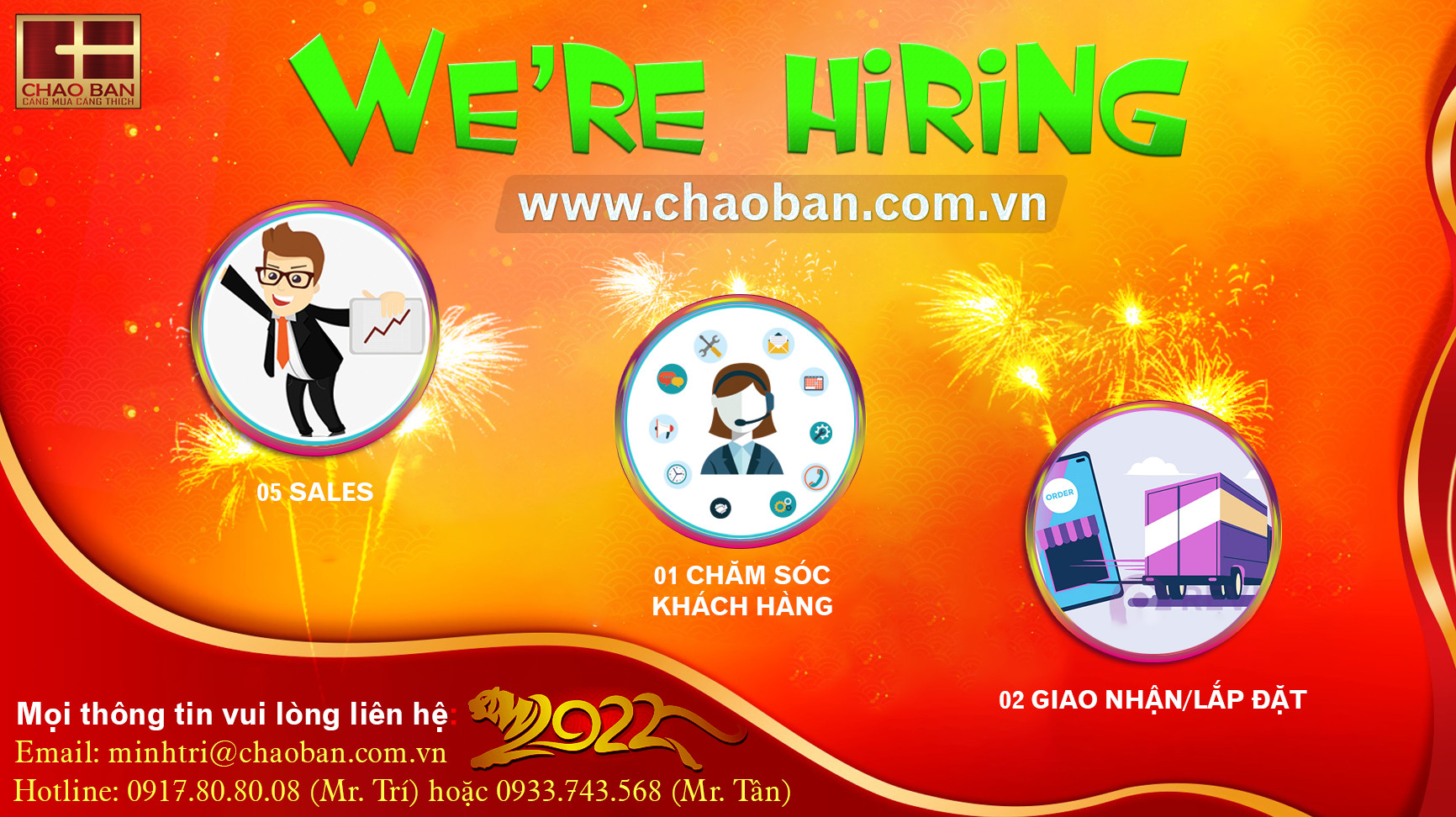 Nhằm mở rộng thị trường phát triển, Công Ty Cổ Phần TM-DV Chào Bán đang tuyển dụng thêm những chiến binh mới với các vị trí sau: